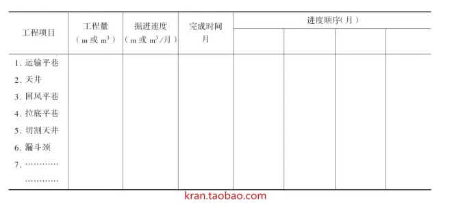 4.采切工作順序及礦塊采切時間采切工作順序應(yīng)優(yōu)先為方便通風、出碴及壓氣供應(yīng)等創(chuàng)造條件,并盡量使采切工作期內(nèi)出勤人員和設(shè)備大體取得平衡。按一般礦塊采準設(shè)計的施工順序都是先從掘進運輸平巷,貫通上下階段,接著做底部結(jié)構(gòu)拉底,與此同時進行切割和掘進鑿巖巷道等。按照先后順序編制礦塊采準切割工作進度計劃表,并依表排出礦塊的采切時間。表1是常用的礦塊采準切割工作進度計劃表的表式。