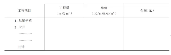 表2礦塊采準切割費用計算表